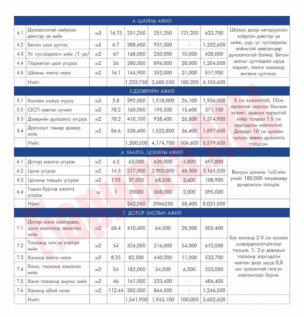 Энэхүү зөвлөгөө, төсвийг гарган бэлтгэсэн БАРИЛГАЧИН ГРУПП-тэй холбогдож, дэлгэрэнгүй мэдээлэл авахыг хүсвэл 77111177, 88817777 дугаарт холбогдоно уу.
